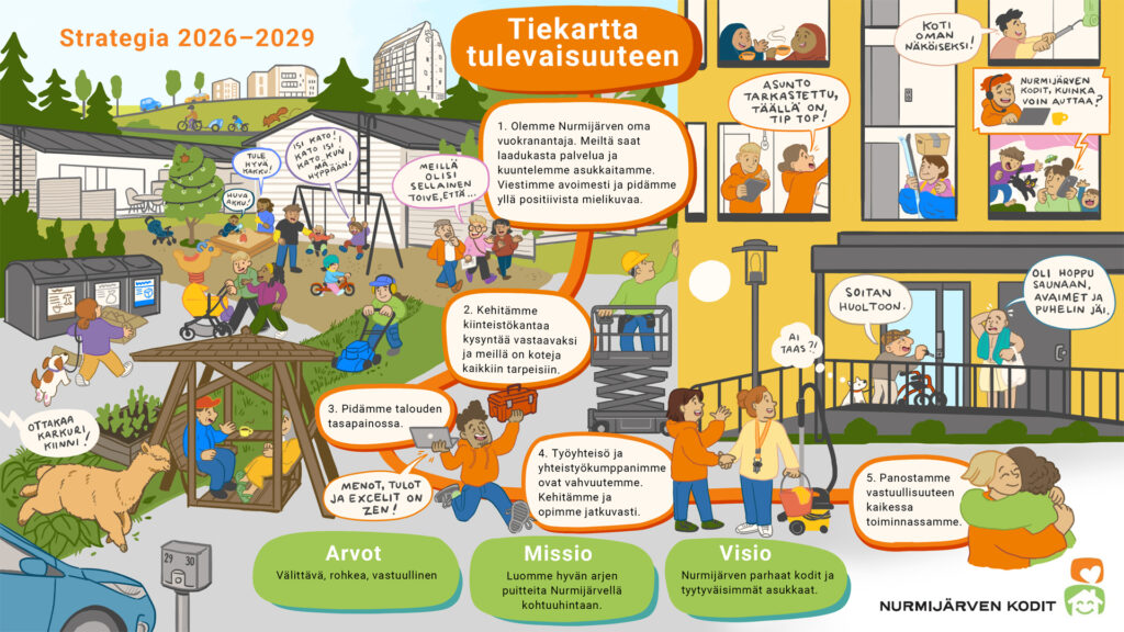 • Olemme Nurmijärven oma vuokranantaja. Meiltä saat laadukasta palvelua ja kuuntelemme asukkaitamme. Viestimme avoimesti ja pidämme yllä positiivista mielikuvaa.